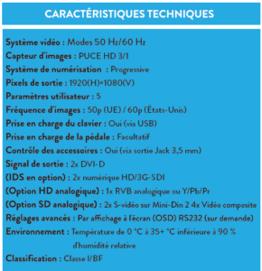 • Enregistrement vidéo en résolution Full HD et capture d’images (en option)