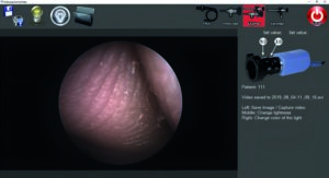 • Réduction de bruit –lorsque le médecin observe des endroits éloignés ou s’il ne dispose pas d’une source de lumière très puissante, l’image contient du bruit supplémentaire, car l’exposition automatique augmente automatiquement le gain de la caméra (ISO) pour préserver la luminosité globale de l’image. Le bruit est gênant et rend l’image désagréable. Nous avons développé un algorithme de débruitage d’image en temps réel, qui supprime le bruit tout en préservant les détails de l’image.