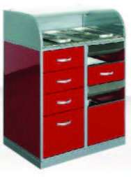 - Compartiment pour instruments sur 2 niveaux, niveau inférieur rétractable, compartiments plateaux en acier inoxy-dable. Eclairage LED intérieur,revêtement en acrylique